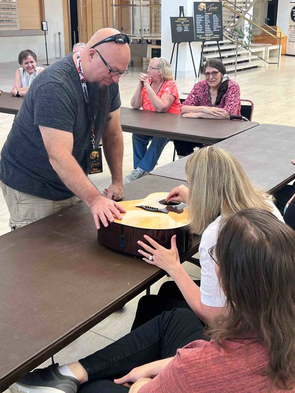 “After participating in the tactile tour, I now have a visual picture in my mind that will help me follow the performance better even if I can’t see it,” said LaFleur. “Plus, I enjoyed learning about the logistics of how they put the production together. I learned a lot—and I got to strum a $3,500 guitar!”