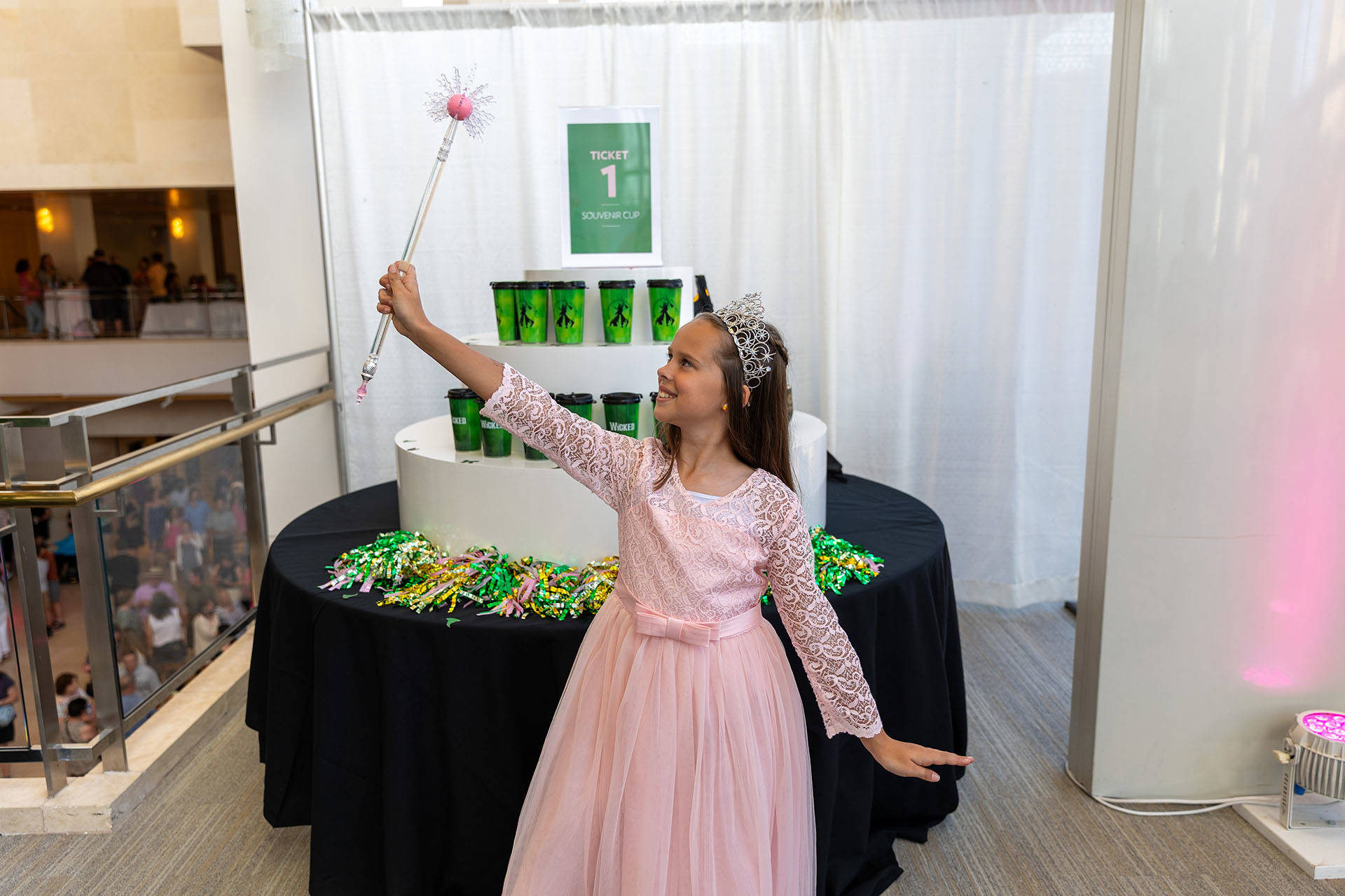 Our Ozdust Lounge, inspired by the musical’s epic Emerald City, offered a whimsical pre-show escape. Guests enjoyed show-themed food and beverages, mingled with fellow Ozians and, of course, snapped lots of photos. It was a place to share excitement and enjoy all things pink and green before heading into the theater.