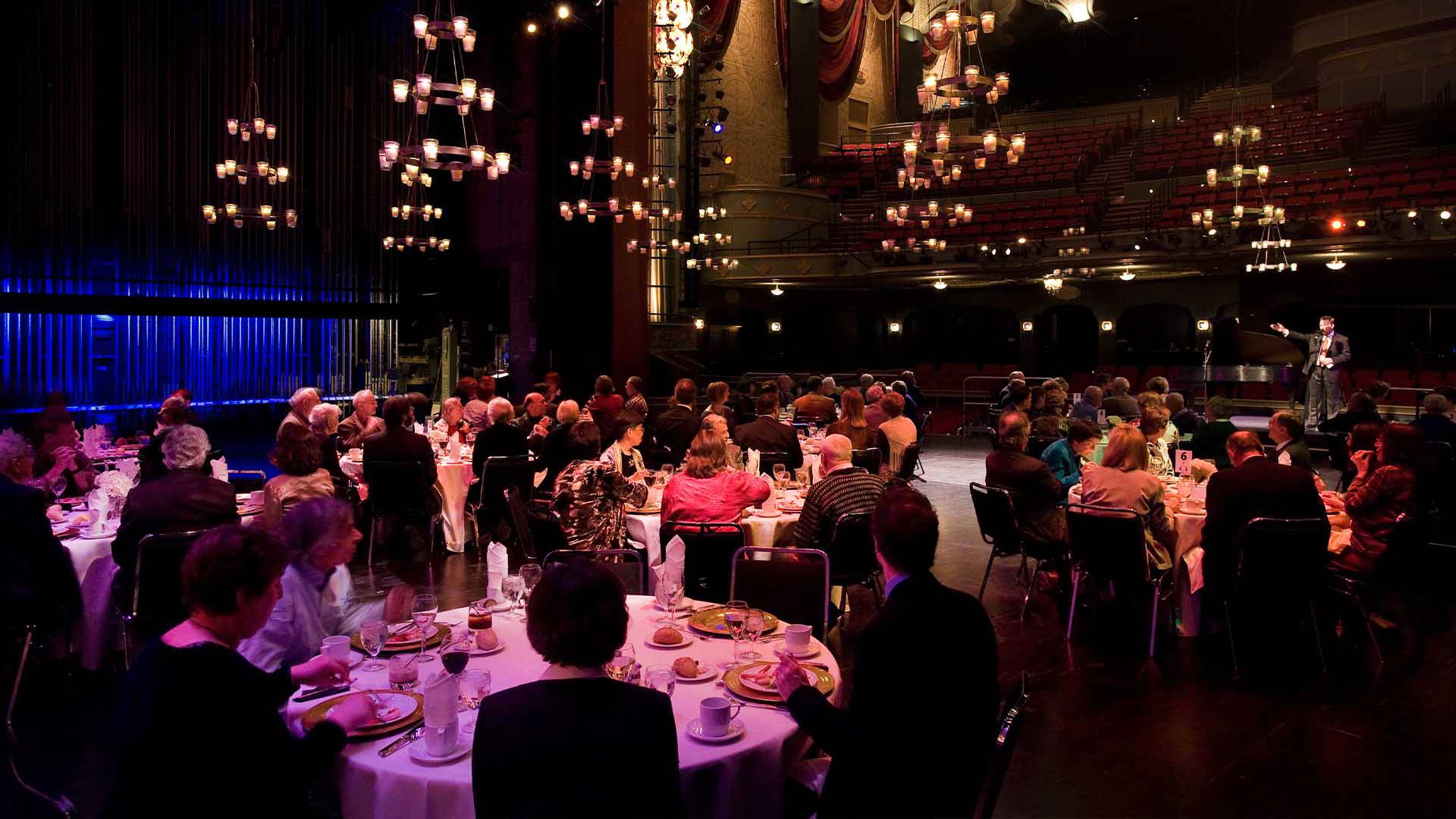Experience this silent movie “palace” of 1928 that has been restored to its original decor, complete with glittering chandeliers and ornate wall sconces. Hosts can choose to dazzle attendees with the view from the stage and even treat their guests to the sounds of the Grand Barton Organ, built in 1927 and still in use today.